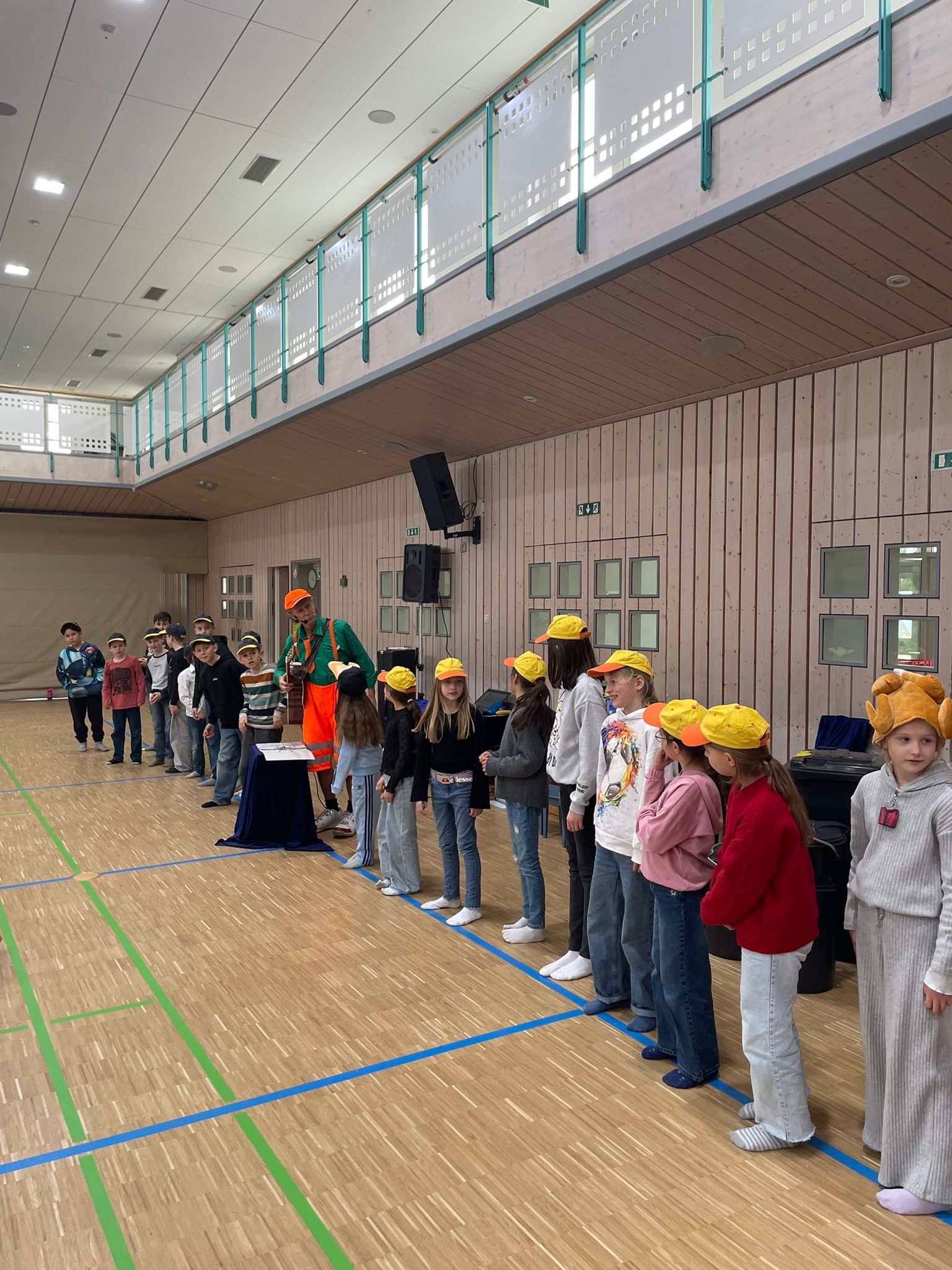 Dem Theater folgten eine sportliche Einlage der Klassen 4b und 4c sowie eine musikalische Rap-Einlage der Klasse 4a.