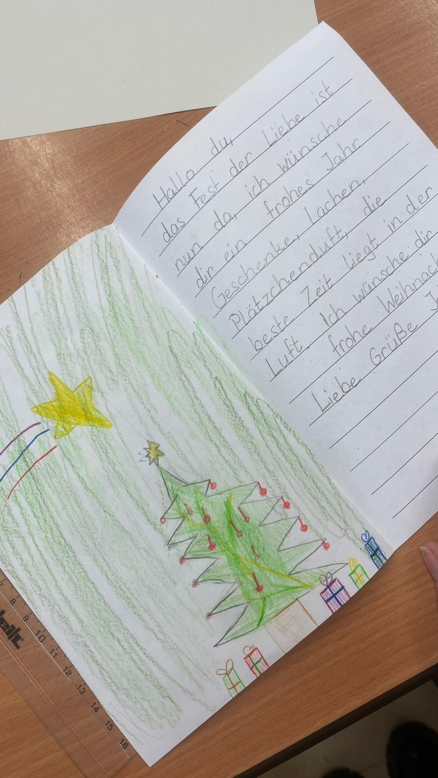 In den letzten Wochen vor den Weihnachtsferien wurden in den Klassenstufen 2, 3 und 4 Briefe für die umliegenden Seniorenheime gestaltet. Insgesamt sind über 120 Briefe zusammengekommen. Das Projekt organisiert von Frau Ristova und Frau Wackler war ein großer Erfolg und hat für große Freude bei den Bewohnern gesorgt. So eine Aktion bereitet nicht nur den Empfängern Freude, sondern vermittelt auch den Kindern auf herzliche Weise, wie wichtig Gemeinschaft und Mitgefühl sind. Wir bedanken uns für die unkomplizierte Zusammenarbeit mit den Einrichtungen und hoffen auch in den kommenden Jahren diese Aktion fortführen zu können.