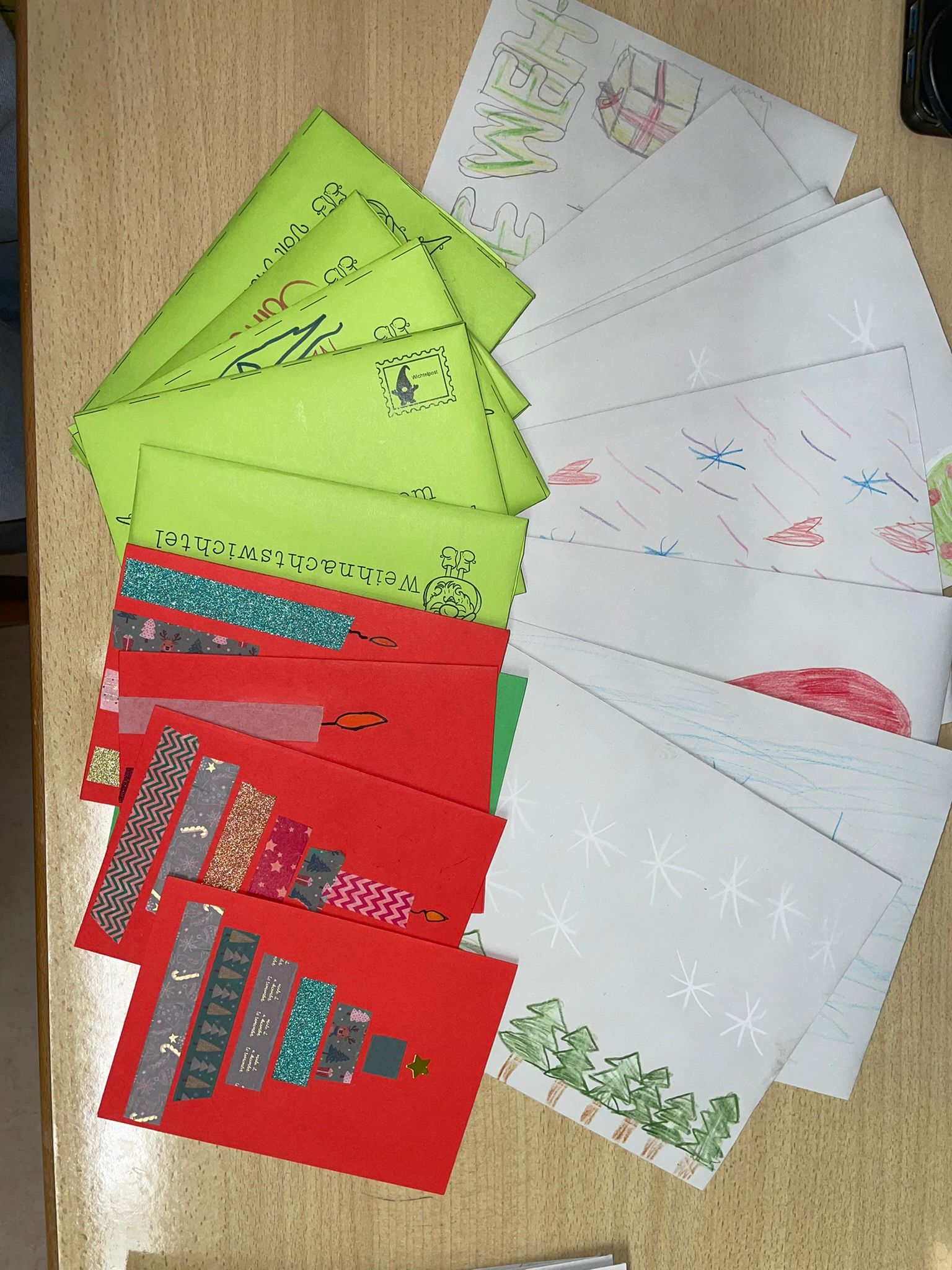 In den letzten Wochen vor den Weihnachtsferien wurden in den Klassenstufen 2, 3 und 4 Briefe für die umliegenden Seniorenheime gestaltet. Insgesamt sind über 120 Briefe zusammengekommen. Das Projekt organisiert von Frau Ristova und Frau Wackler war ein großer Erfolg und hat für große Freude bei den Bewohnern gesorgt. So eine Aktion bereitet nicht nur den Empfängern Freude, sondern vermittelt auch den Kindern auf herzliche Weise, wie wichtig Gemeinschaft und Mitgefühl sind. Wir bedanken uns für die unkomplizierte Zusammenarbeit mit den Einrichtungen und hoffen auch in den kommenden Jahren diese Aktion fortführen zu können.