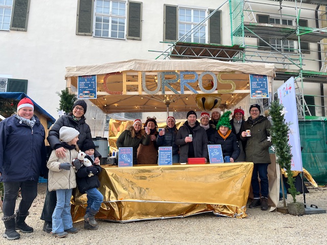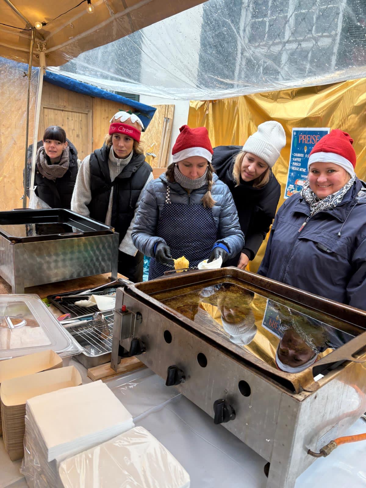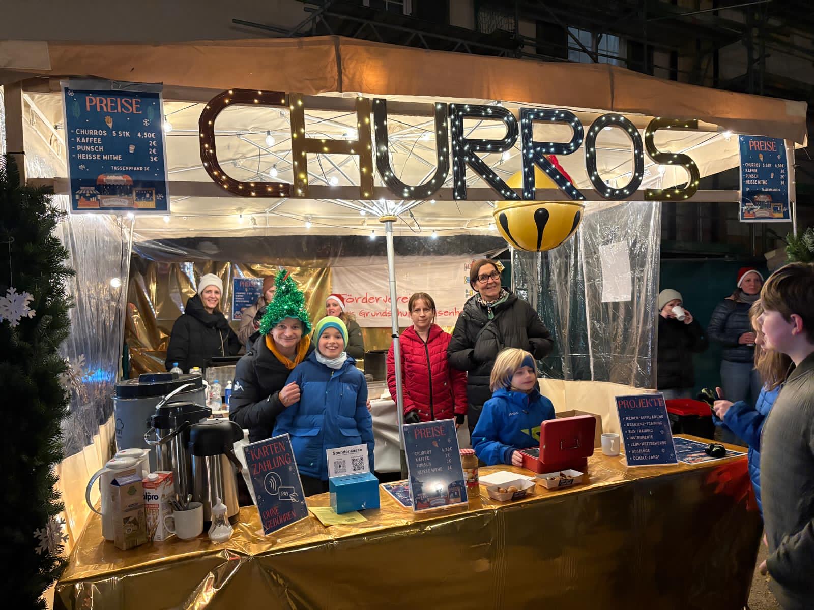 Auch am Samstag herrschte am Stand des Fördervereins reges Treiben. Dort wurden frisch zubereitete Churros, würziger Punsch und heißer Pflaumenlikör angeboten. Das Team legte sich voll ins Zeug, und sogar Frau Albrecht, die Schulleitung, unterstützte tatkräftig beim Verkauf. Der festlich geschmückte Stand war ein echter Blickfang und lud zahlreiche Besucherinnen und Besucher zum Verweilen ein.